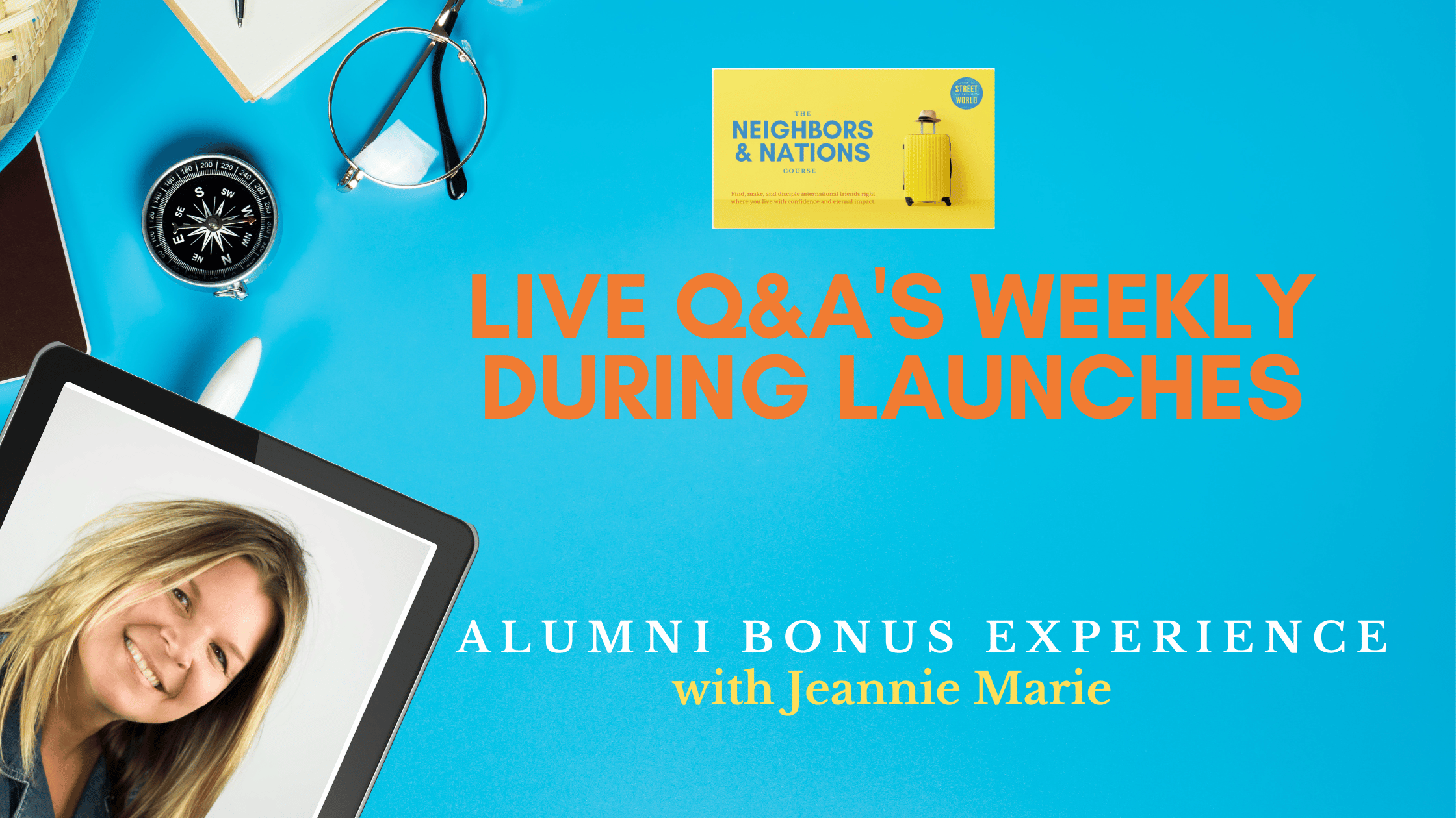 Want to see how I teach AND get EXTRA Bonuses worth $800 when you enroll in The Neighbors & Nations Course for the next seven days? Sign up to watch the on-demand free one-hour training Three Secrets to Offer Jesus in Winsome Ways...to Your Neighbors and the Nations Near You.